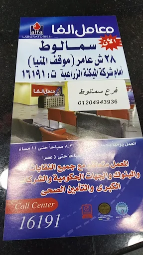 تعد سلسلة معامل الفا لاب واحده من اكبر معامل التحاليل الطبيه واكثرها انتشارا فى جمهورية مصر العربيه والتى تطبق اعلى معايير الجوده المتعارف عليها عالميا وحاصله على اعلى شهادات الجوده فى مجال التحاليل الطبيه وتقدم خدمه طبيه متميزه لجميع عملائها على مستوى الجمهوريه.